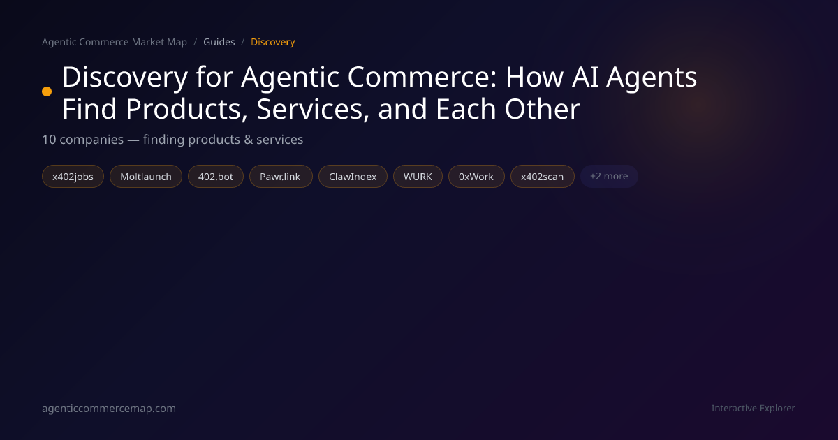 A comprehensive guide to discovery in agentic commerce, covering how AI agents find products, services, APIs, and other agents through marketplaces, directories, and indexes.