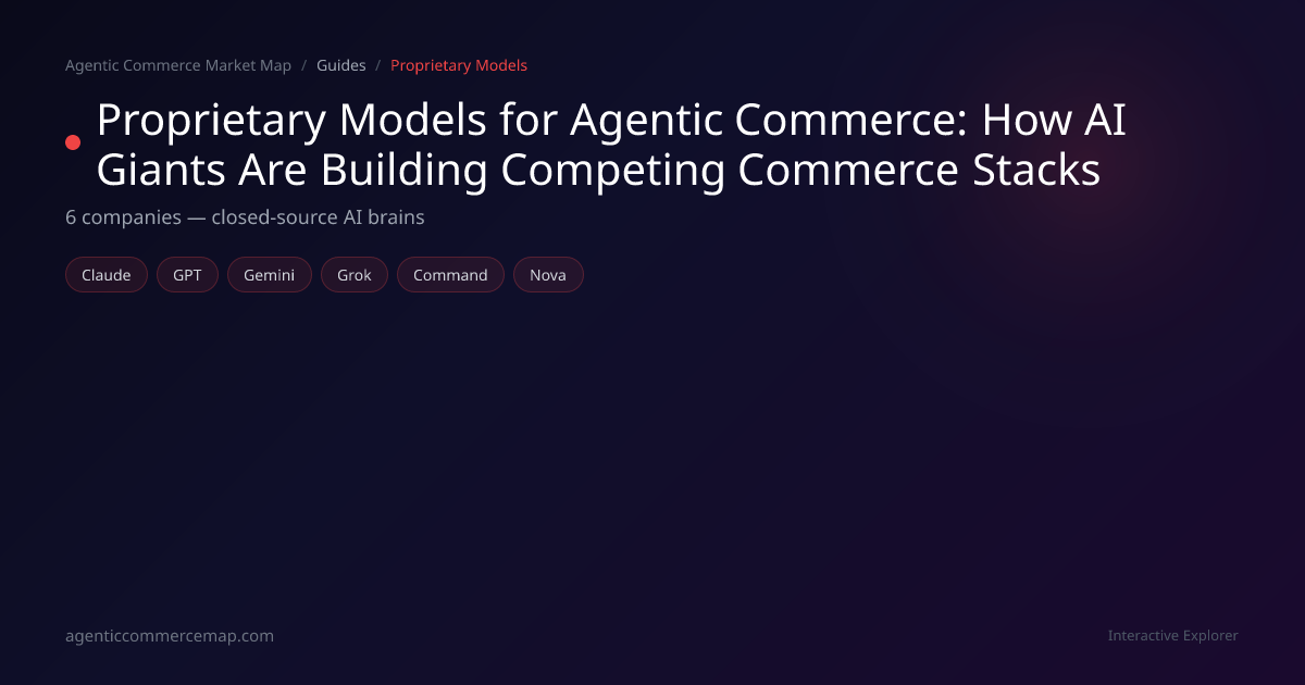 Six companies dominate the proprietary model landscape for agentic commerce, each with a distinct strategic position.